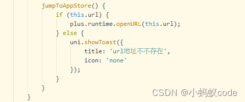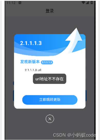 最后 提示升级页面出来了,感觉马上就要胜利了。不过还是出bug了, 点击页面上的 “立即跳转更新” 按钮时,没有任何反应。再次一步步的检查。在按钮事件的地方加了 下面的一个提示,就发现了为啥没有反应了,因为这个url,也就是安装包的下载地址没有获取到,为null。真的有点晕了。
