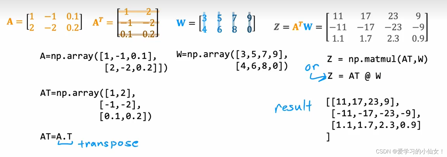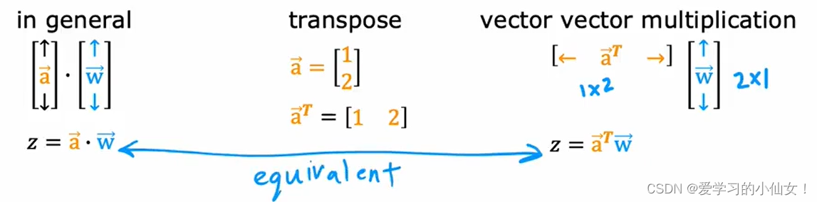 向量a和向量w的点积(dot product) 与 向量a转置和向量w的点积相同