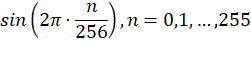 这是一整个单位正弦波的一个周期被等间隔量化了 256 个点,不带具体频率。它是一个“形状模板”,而不是某个采样频率下的数据记录。