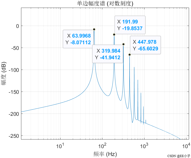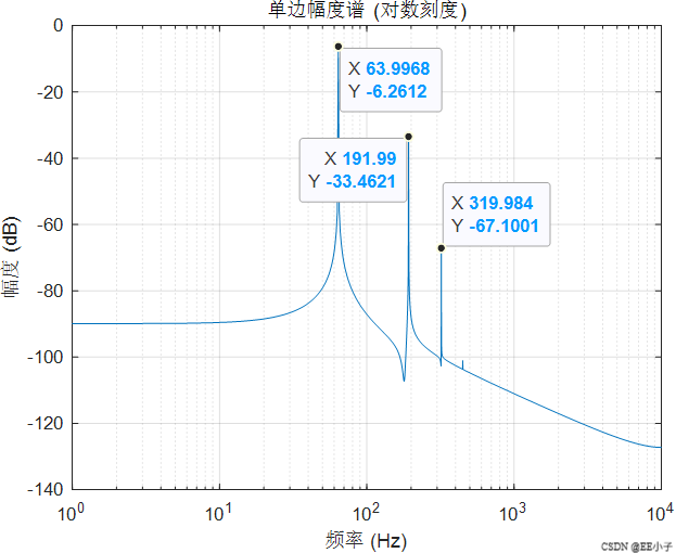 - 64 Hz 处的幅度近似由