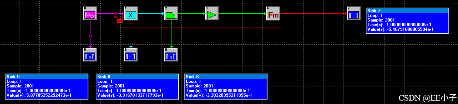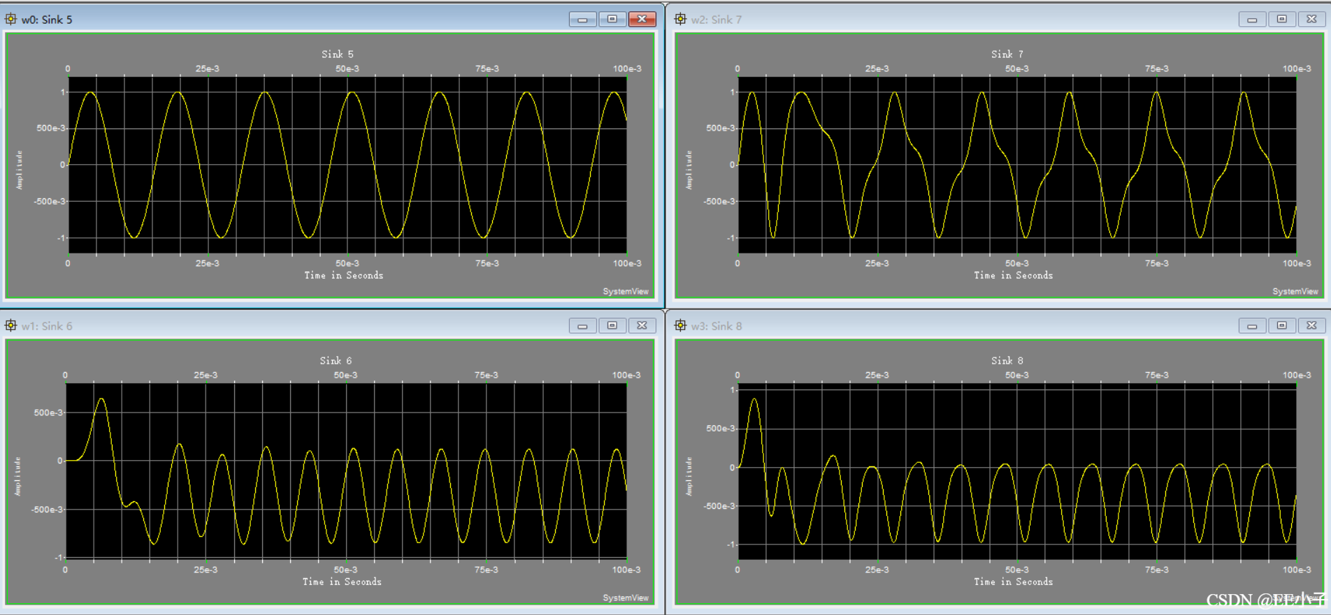 仿真时长0.1s,仿真结果显示,输出信号畸变。