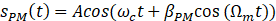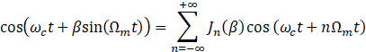 当相位是正弦的(PM 或 FM 都能写成如下形式),输出可以用贝塞尔函数展成无穷侧带: