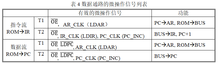 指令的取指或执行过程都是指令或数据从一个部件打入总线BUS,再从总线BUS打入另一个部件的过程。为了保证上述操作先后次序,指令流(ROMIR)和数据流(ROMPC)都分为T1和T2两个周期,如下图所示:在T1周期,信息从源部件(例如程序存储器PROGRAM)打入总线BUS;在T2周期,信息从总线BUS打入目标部件(例如指令寄存器IR或者程序计数器PC)。