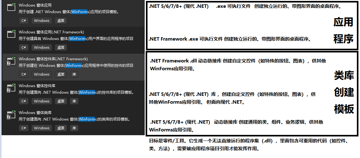 C#技术栈 gitCode代码 .NET 框架:以 “(NET Framework)” 结尾的项目,基于传统的.NET Framework(如 4.8 及以下版本),仅支持 Windows 平台,是早期 WinForm 开发的技术栈。.NET (跨平台框架):无 “(NET Framework)” 后缀的项目,基于新的.NET(如.NET 5/6/7/8+),支持跨平台(但 WinForm 仍以 Windows 为主要运行环境),是现代 WinForm 开发的推荐选择。