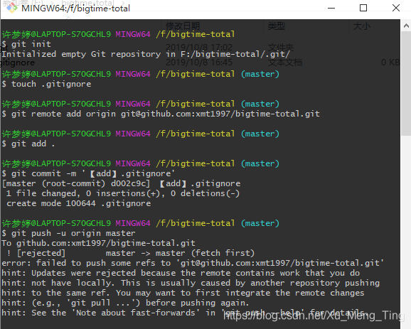 使用git pull --rebase origin master合并 GitHub 和 本地 的库,本地会多出之前不同步的文件,在使用 git push -u origin master 推送到 GitHub 库中。