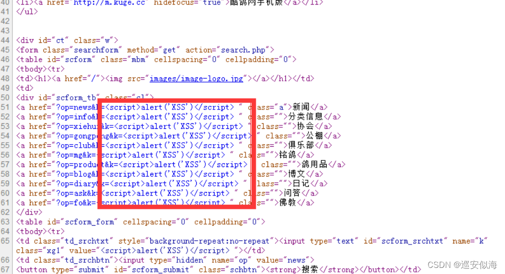 我们发现<a href="?op=news&k=<script>alert('XSS')</script> " class="a">新闻</a>