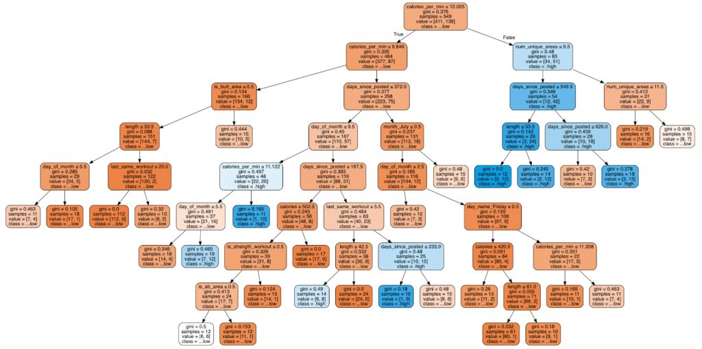 正如我们所看到的,每分钟燃烧的卡路里是最重要的特征。每分钟燃烧12.025卡路里似乎是一个“神奇”的数字。
