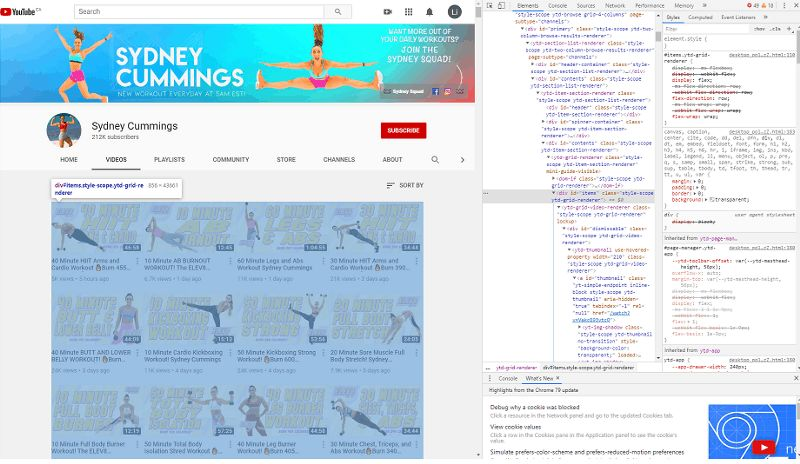 我们分析的YouTube频道是Sydney Cummings —— 我们最喜欢的教练。她发展很快,最近订阅用户超过了20万。另外,Sydney每天都发布各种锻炼视频,这是一个可以分析的数据量。