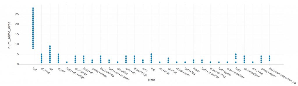 人们不喜欢锻炼标题中描述的太多不一样的身体部位。根据我们的模型,一个月内专注于少于10个身体部位的组合会更好。