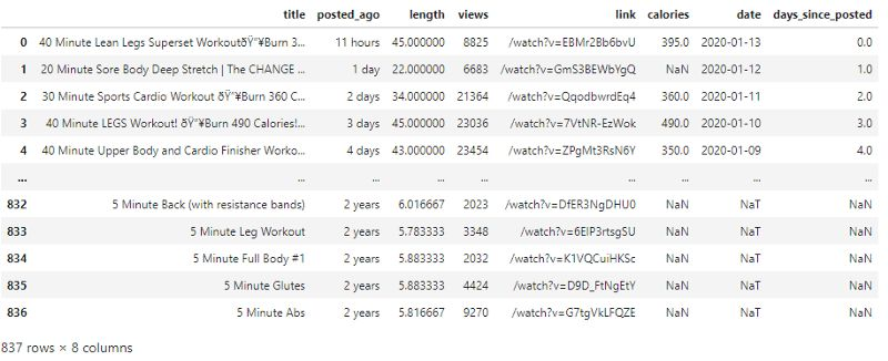 在最后一步中将数据加载到Python中已经完成了,让我们看看我们的数据集df_videos。