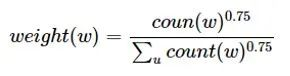 具体来说,word2vec里面的负采样:将输出层的V个样本分为正例(Positive Sample)也就是目标词对应的项,以及剩余V−1个负例(Negative Samples)。举个例子有个样本phone number,这样wI=phone, wO=number, 正例就是number这个词,负例就是不太可能与phone共同出现的词。负采样的思想是每次训练只随机取一小部分的负例使他们的概率最小,以及对应的正例概率最大。随机采样需要假定一个概率分布,word2vec中直接使用词频作为词的分布,不同的是频数上乘上0.75,相比于直接使用频次作为权重,取0.75幂的好处可以减弱不同频次差异过大带来的影响,使得小频次的单词被采样的概率变大。