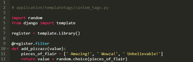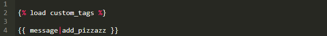 现在,如果我们有一个message变量,我们可以给它提供一些pizzazz。为了用这个定制的过滤器,我们必须用load标签把我们的标签模板加载到模板。