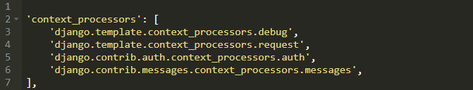 这是一组当你用Django的startproject命令时默认生成的上下文处理器配置。