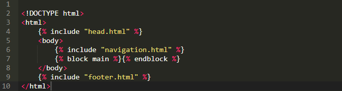 这个include标签可以将那些额外的模板片段包含到所在位置。给模板取一个好的名字,如果你需要像导航一样改变一些章节的结构,你可以通过合适名字找到所需要的模板。