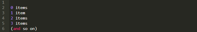 当文本需要计算东西的个数时候,pluralize是一个方便的标签。下面是计算项目数的例子。