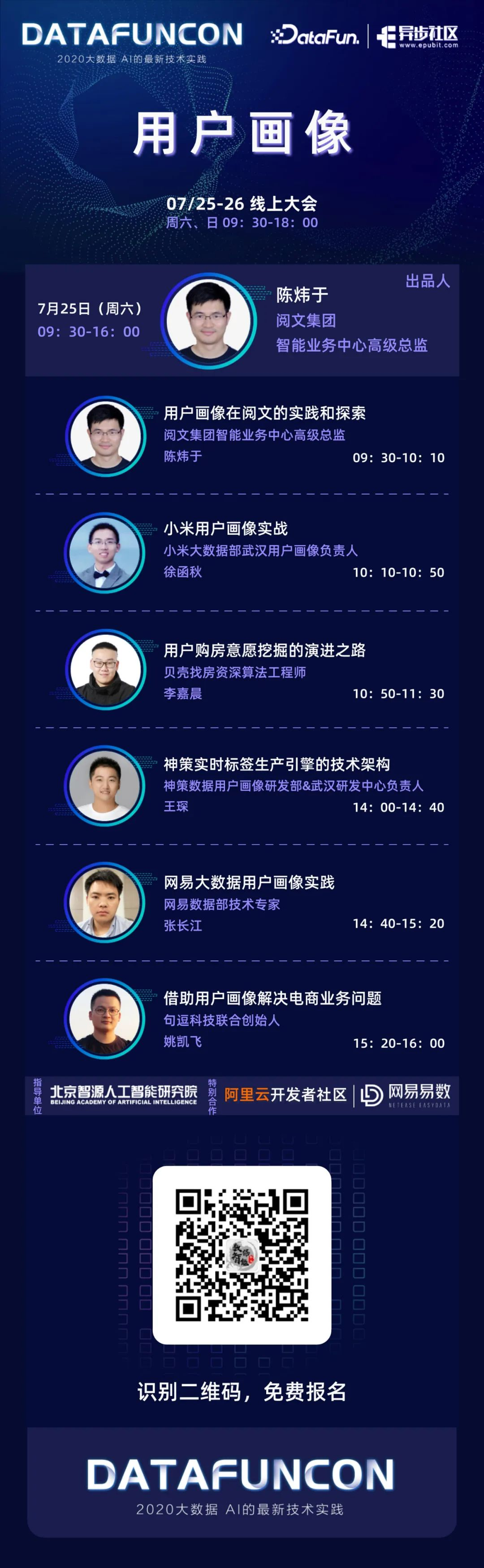 导读:7月25日,9:30-16:00,DataFunCon:用户画像论坛将准时开启,感兴趣的小伙伴和小编一起来了解下吧: