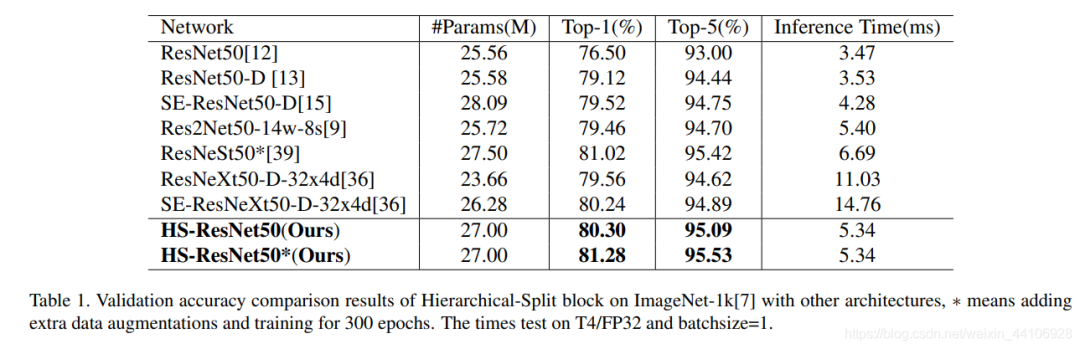 可以看到最后的实验,得益于合理的设计思想,HS-ResNet的性能和速度都很快。