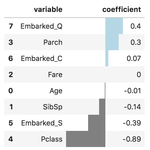 如果我们做机器学习,那么模型的参数或者特征的重要性是必不可少的一环。通常我们会像下面这样查看参数,但小数点太多了,真的容易花眼,这样非常不便于分析和比较。