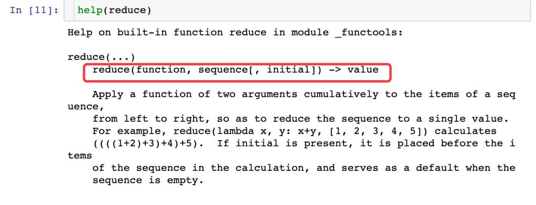 help(reduce) # 查看帮助文档