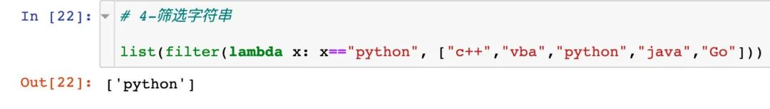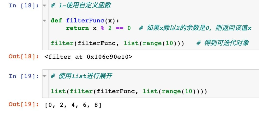 序列中的每个元素作为参数传递给函数进行判断,返回True或者False,最后将返回True的元素放到新列表中。