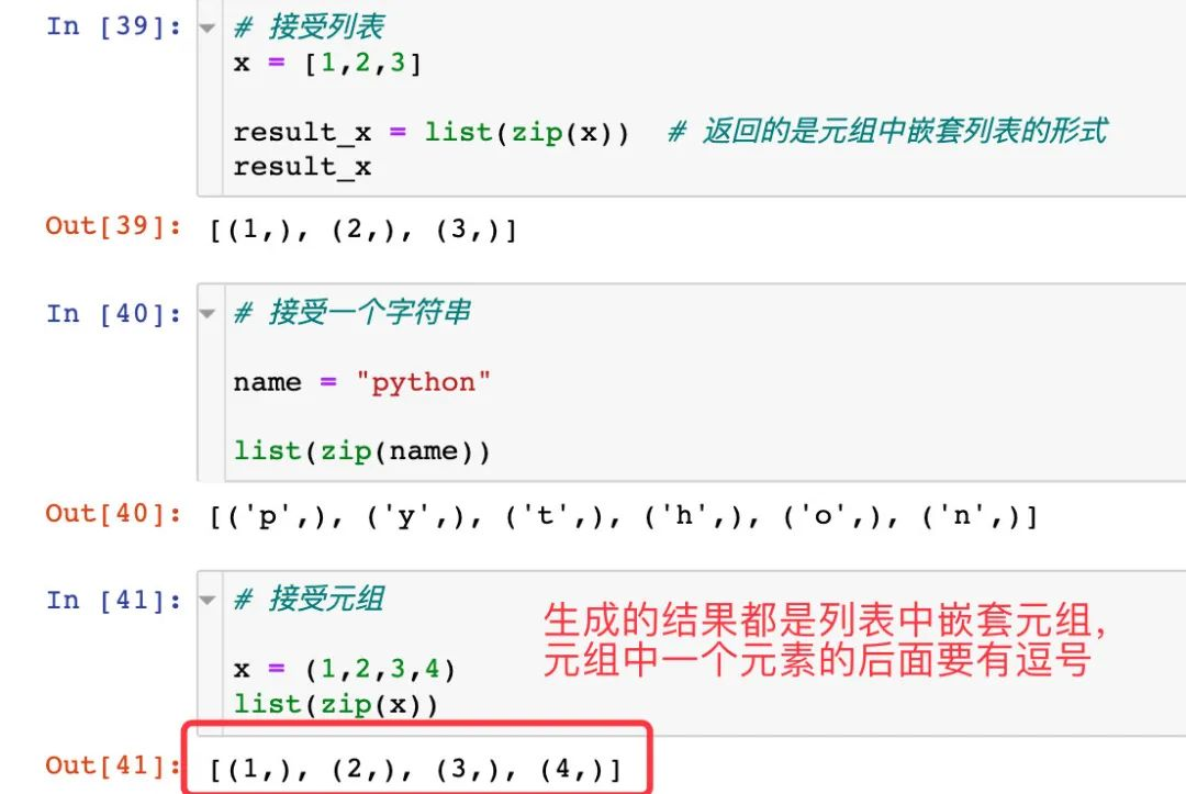 zip中可以接受列表、元组、字符串等形式