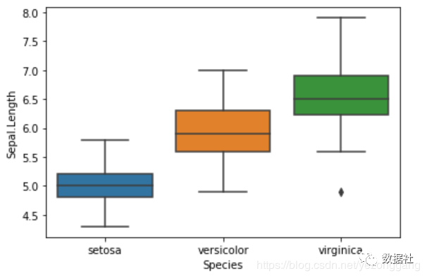 # 对 Numerical Variable,可以用 Box Plot 来直观地查看不同花类型的分布。