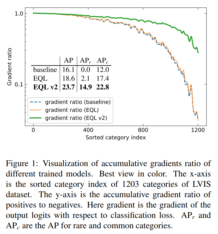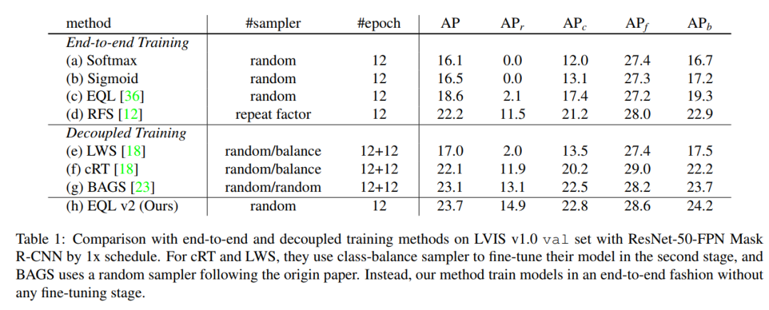 最近提出的解耦训练方法成为长尾目标检测的主要范式。但是它们需要一个额外的微调阶段,并且表示和分类器的脱节优化可能导致次优结果。但是,端到端的训练方法,例如均衡损失(EQL),仍然比解耦的训练方法更差。