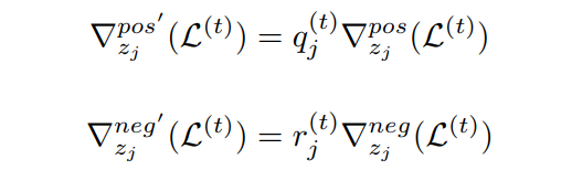 得到正梯度 和负梯度 ,然后将它们分别应用于当前批次的正梯度和负梯度,重新加权后的梯度为: