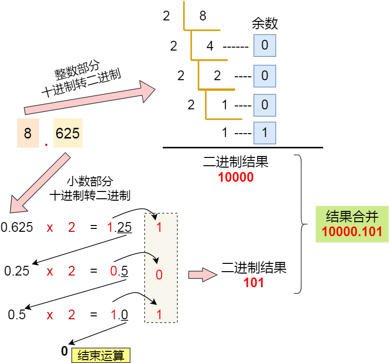 话不多说,我们就以 8.625 转二进制作为例子,直接上图: