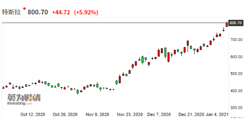 自2020年3月以来,特斯拉的股价已经飙升了近830% 。