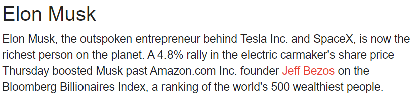 当我们在谷歌搜索“world's richest man”(世界首富)时,之前出来的都是亚马逊创始人贝佐斯,如今已经变成了特斯拉 CEO 埃隆·马斯克。