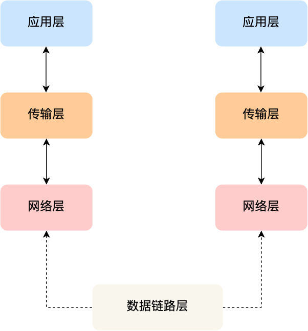 也就是说,我们不希望传输层协议处理太多的事情,只需要服务好应用即可,让其作为应用间数据传输的媒介,帮助实现应用到应用的通信,而实际的传输功能就交给下一层,也就是网络层(Internet Layer)。