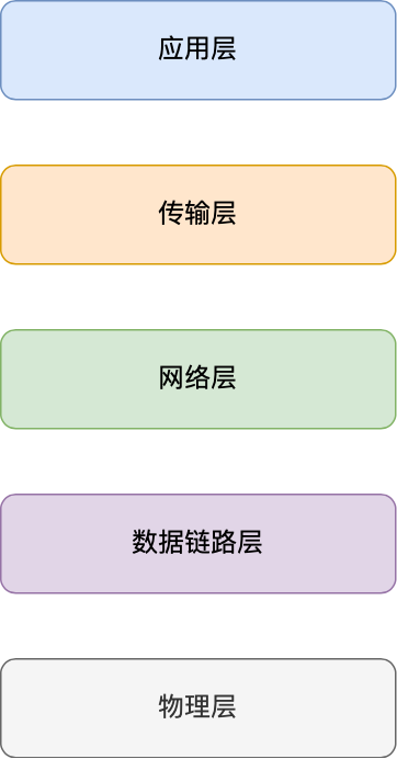 综上所述,网络协议通常是由上到下,分成 5 层,分别是应用层、传输层、网络层、数据链路层和物理层。