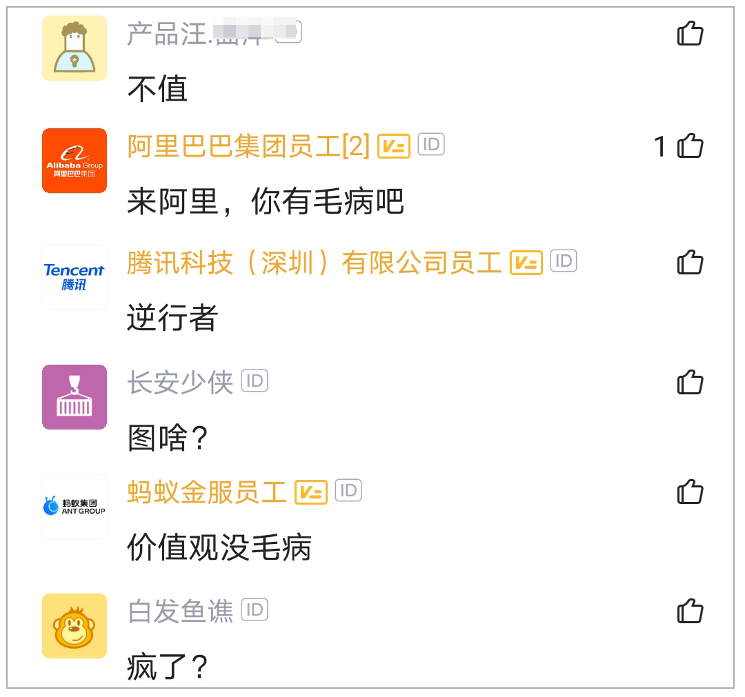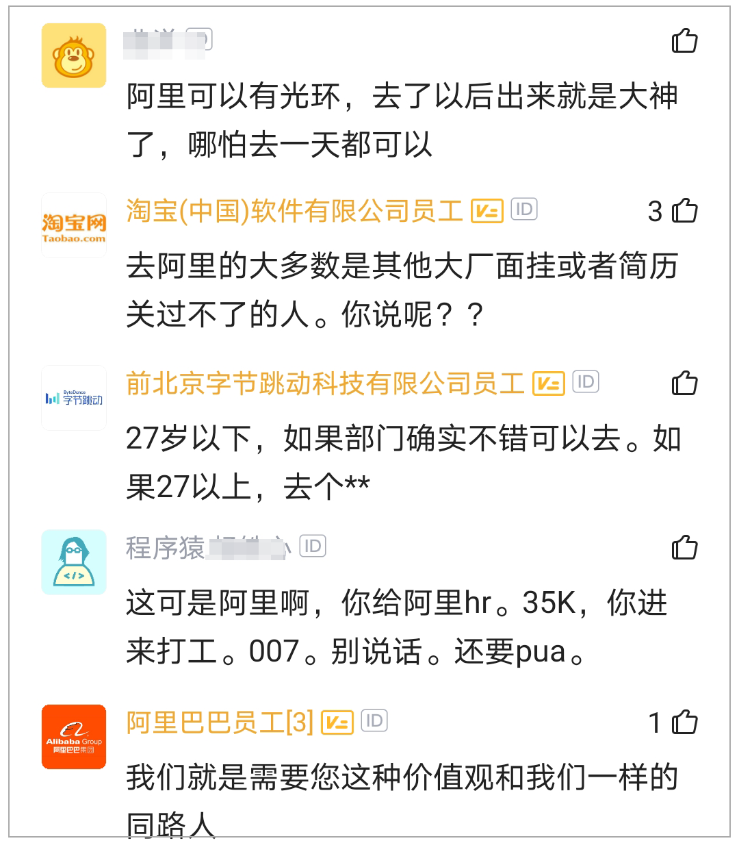 但也有网友说非常值得:值得,我愿意倒贴,这可是阿里啊!阿里是很多人想进都进不去的地方;多少人倒贴阿里35k都进不去;p7算是股票和年终就平薪了吧。