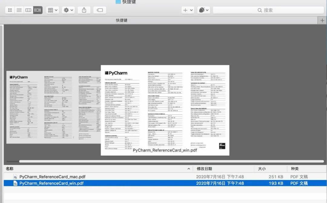 下面的宝藏图片是2张(windows && Mac)高清的PyCharm快捷键一览图