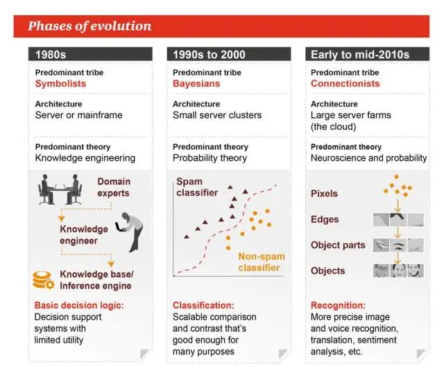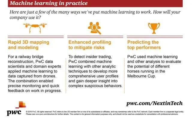 四大会计师事务所之一的普华永道(PwC)发布了多份解读机器学习基础的图表,其中介绍了机器学习的基本概念、原理、历史、未来趋势和一些常见的算法。为便于读者阅读,机器之心对这些图表进行了编译和拆分,分三大部分对这些内容进行了呈现,希望能帮助你进一步扩展阅读。