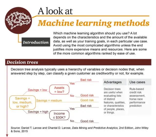 你应该使用哪种机器学习算法?这在很大程度上依赖于可用数据的性质和数量以及每一个特定用例中你的训练目标。不要使用最复杂的算法,除非其结果值得付出昂贵的开销和资源。这里给出了一些最常见的算法,按使用简单程度排序。
