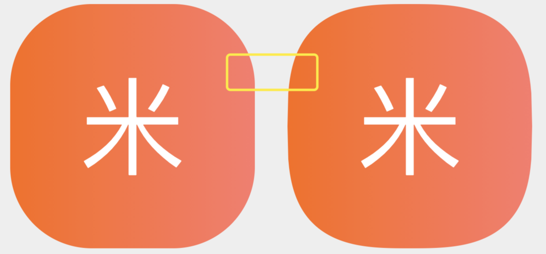 左边是加了 border-radius 的矩形,右边是原研哉给出的小米logo。