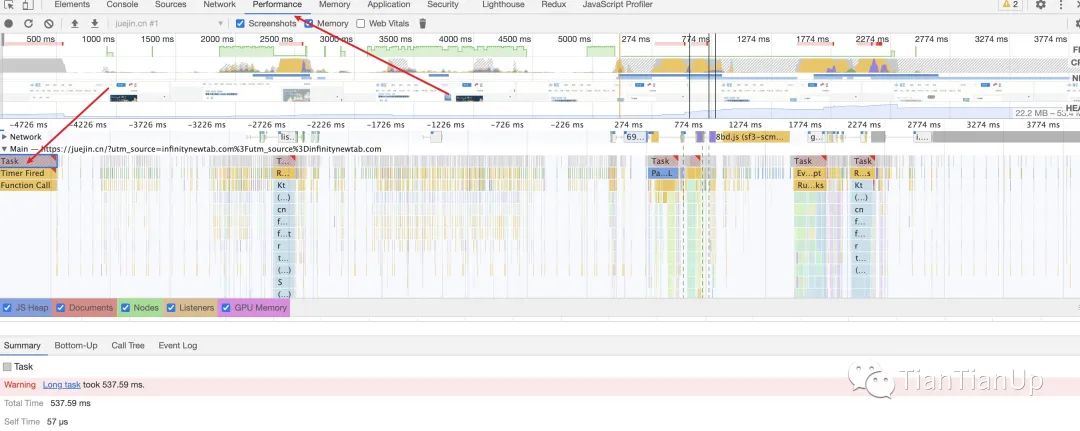 里面有很多关键性指标,比如 Long Task执行的细节,跟面试官交流了下,排查性能问题,我是如何通过这个Performance相关的细节去把握的,当然了,里面的内存使用情况,是否出现内存泄露问题,都可以借助它。