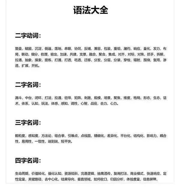 在周报,ppt里使用一些高级词汇,例如,“用组合拳赋能用户”,“打通生态闭环”......