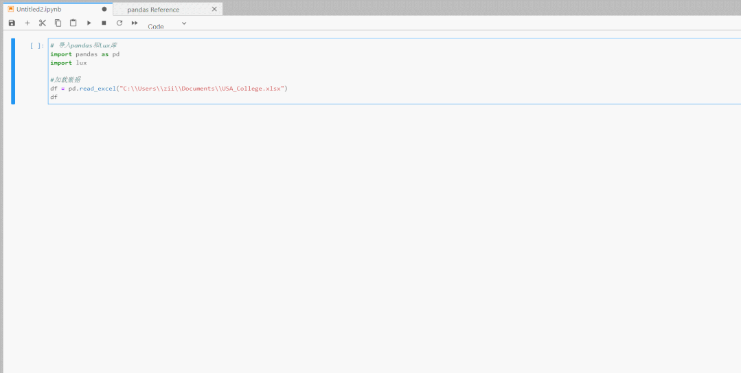 LUX在Jupyter Notebook或Lab中进行交互,图表与数据可以同步显示。