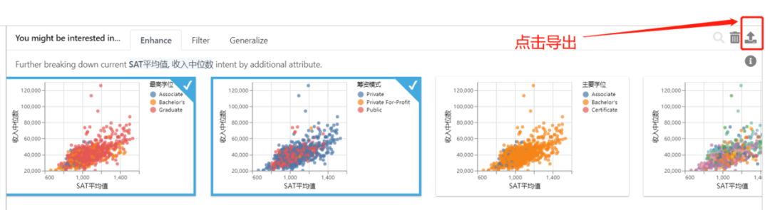 LUX支持图表的导出,既可以导出图表文件,也可以导出相应的matplotlib、altair代码。
