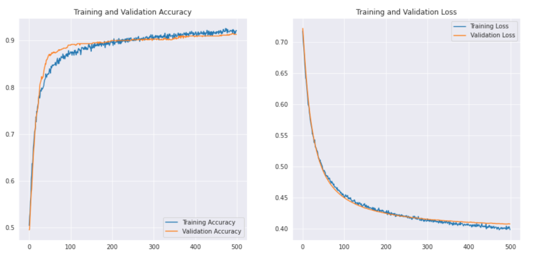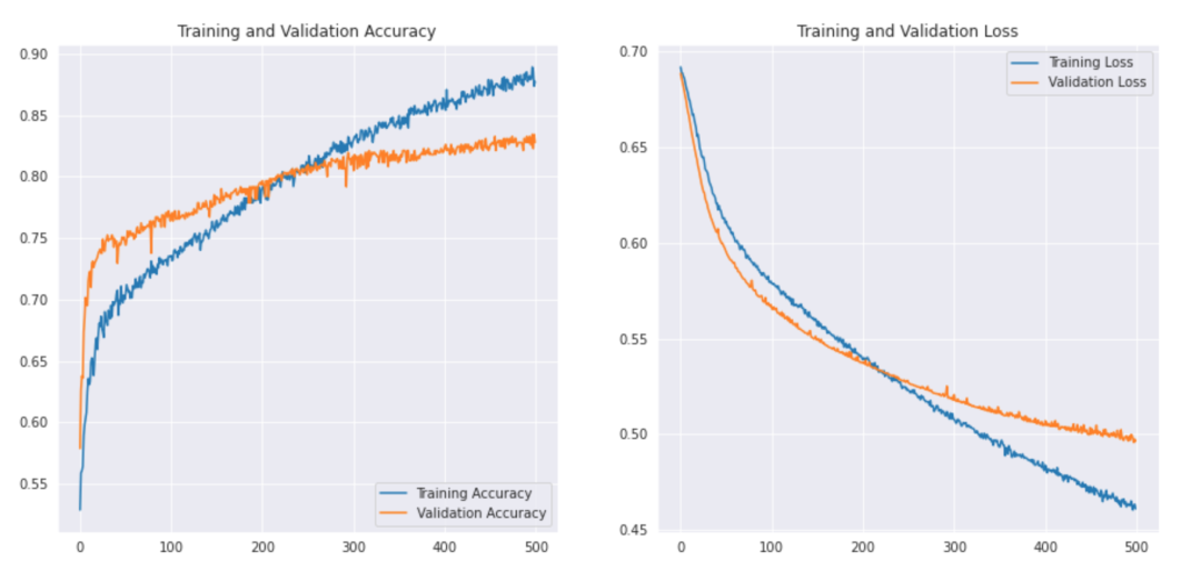 我们将绘制我们的训练和验证的准确性以及训练和验证的损失。