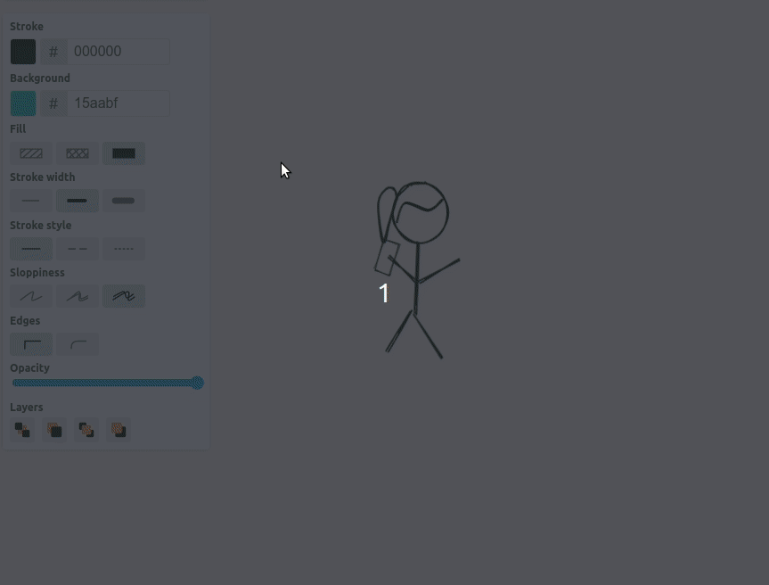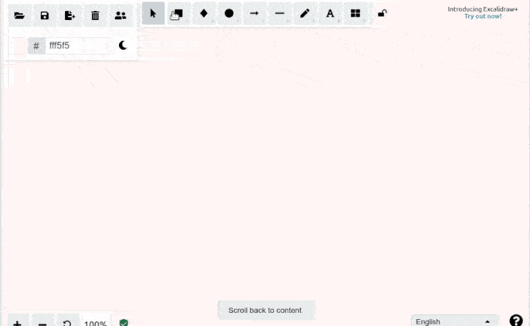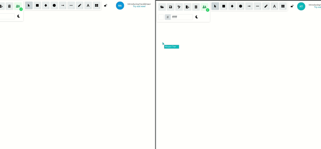 Excalidraw 也提供了协同工作的功能,也就是一个人做图的同时,另一个人可以实时看到。启用实时协作,单击左上角的 2 人图标即可。