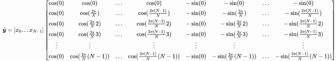 然后用实部(cos形式)来表示矩阵的左半部分,用虚部(sin形式)来表示矩阵的右半部分: