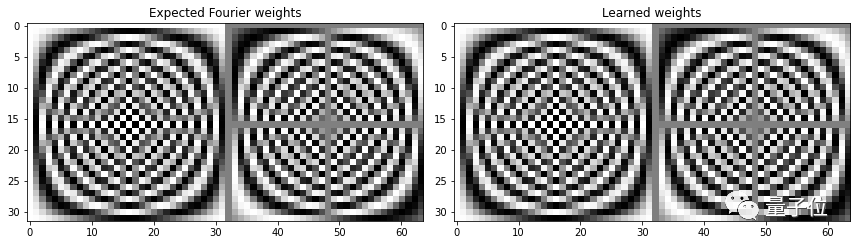 指数矩阵包含权值,可以称之为复合傅里叶权值(Complex Fourier weights),通常情况下我们并不知道神经网络的权重,不过在这里可以。