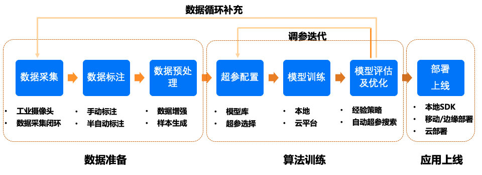 从数据预处理、超参配置、模型训练与评估、模型多端部署等深度学习产业项目开发全流程全面覆盖。