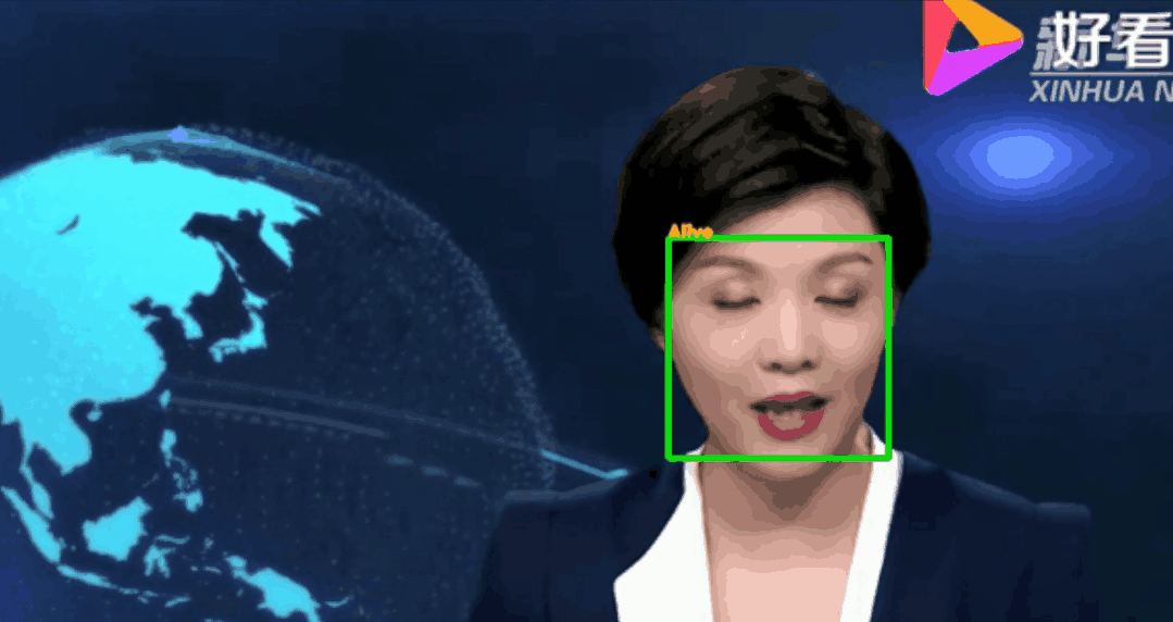 执行脚本face_recognize.py,即可调用训练好的模型完成活体检测。