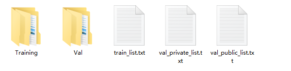 Training中为训练集图片,Val为验证集图片,train_list.txt为训练集各个样本的路径及标签,val_private_list.txt为验证集各个样本的路径及标签,val_public_list.txt本项目暂时不用